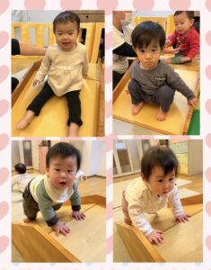 斜面を手と足を踏ん張りながら頑張って登ったり、