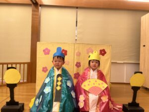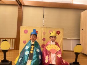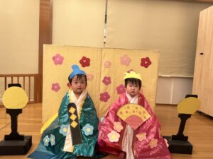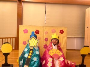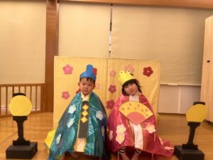 最後は、子ども達が待ちにまったおひなさまとおだいりさまに大変身して写真撮影をしました🎎