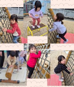 高い場所も怖がることなく、網登りや丸太平均台に挑戦していました🌟
