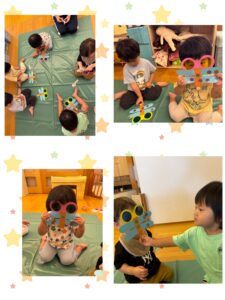 お部屋でめがねを覗き込んだり、戸外でも「きれいねー✨」と大喜びの子どもたちでした❗️