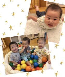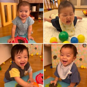 ボールをハイハイで追いかけたりだるまさんの穴にポト〜ンと落としてみたり満面の笑顔で夢中になって遊んでいましたよ☺️