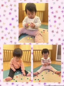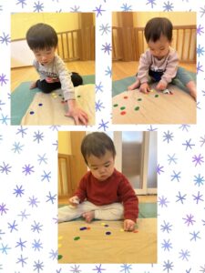 つまんで紙にぺったんと貼ることを興味津々な表情で夢中になって楽しんでいましたよ😄