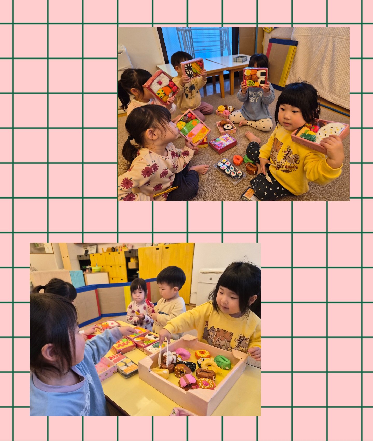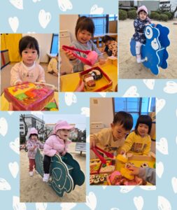 おおきいぞうぐみさんは、「どれにしますか?」「これください😄」とお客さんと店員さんになりきってお店屋さんごっこを楽しんだり、