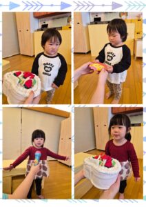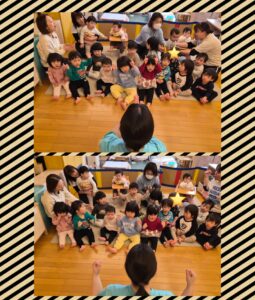 2月のお誕生日会🎂 今日は2月のお友だちのお誕生日会がありました! 昨日に節分会があったこともあり、今月のうた「豆まき」手あそび「鬼のパンツ」はもう完璧です🌟 お誕生日のお友だちは、少し照れながらも指で何歳になったかを教えてくれたり、「ハンバーグ‼️」「すみっコちゃん💓」と好きな食べ物やキャラクターを教えてくれましたよ😊 保育士出し物「トンネルから出てくるのなんだ❓」をみんなで見ました! 「きゅうきゅうしゃ!」「はしごしょうぼうしゃ⭐」とトンネルから出てくる乗り物を元気いっぱいに答えてくれました😚 ← 節分会👹 年度別 2026 2025 2024 2023 2022 2021 2020 2019 2018